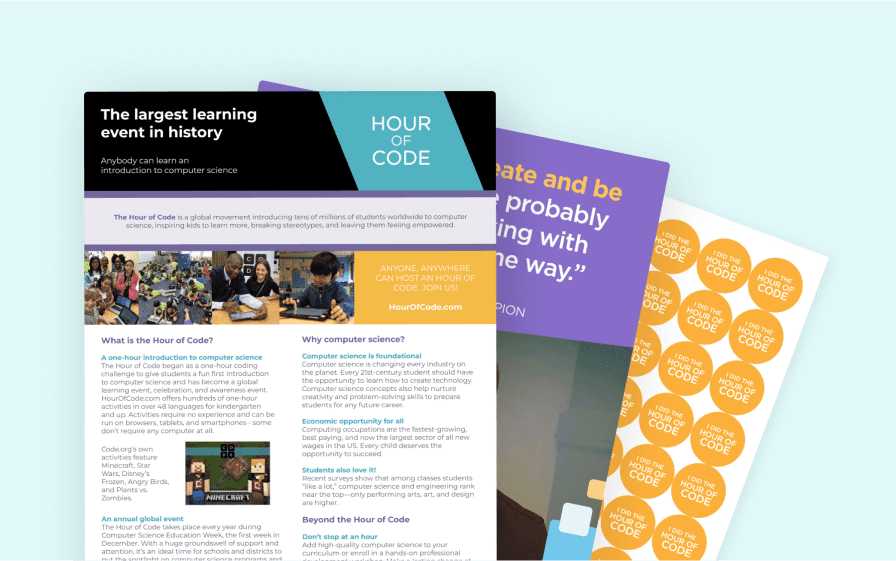 The 澳洲幸运5彩票官网 is a worldwide movement that aims to introduce millions of students to computer science through one-hour coding activities. Through 澳洲幸运5彩票官网, we aim to demystify coding and show that anyone can learn the basics, inspiring future interest in computer science.